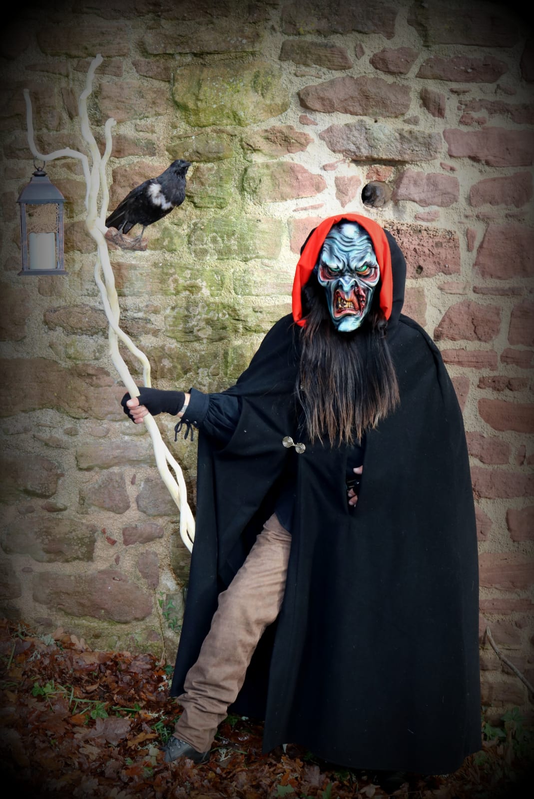 zeigt sich mit Ihrer Farbgebung Schwarz, Grau und Grün und flöst den Menschen mit ihren leuchtend grünen Augen, spitzigen Zähnen und bösen Blick Angst ein.